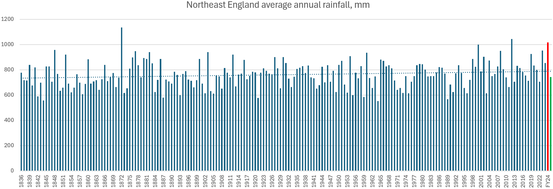 The last reported fiscal year, ended March 31 2024, was not a good one in this regard. Rainfall in the North-East was 153% of the long-term average, and the third-highest since records began. On the other hand, the 12 months to March 31 2025 were slightly below average: